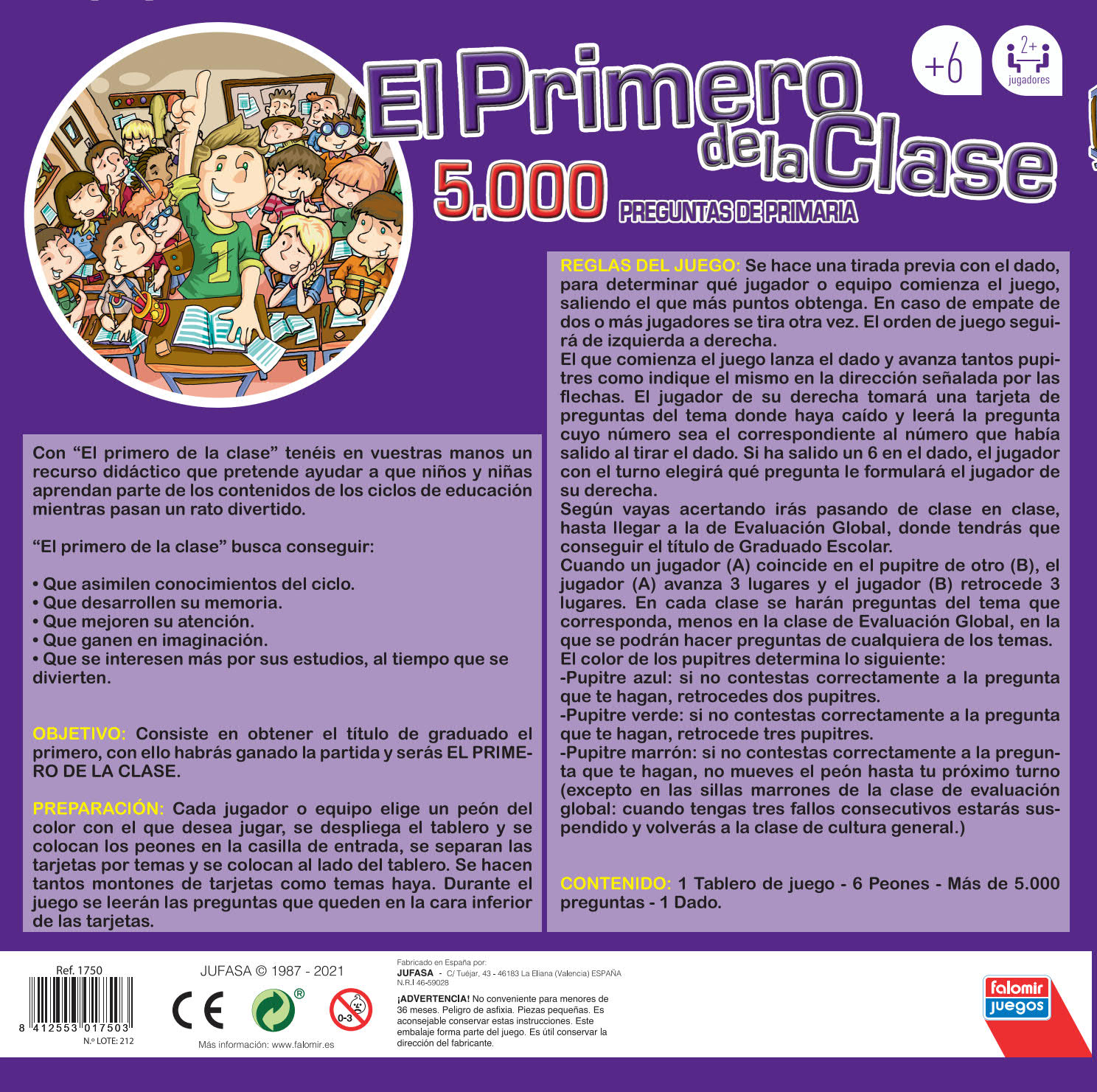 Ahorre un 2,00 €Avanza por el tablero de juego de pupitre en pupitre, contestando a las diferentes preguntas para llegar a la prueba final y conseguir el graduado escolar. Con 5000 preguntas de primaria. VENTA SOLO EN CANARIAS (ARCHIPIELAGO CANARIO - PROVINCIA LAS PALMAS Y SANTA CRUZ DE TENERIFE)